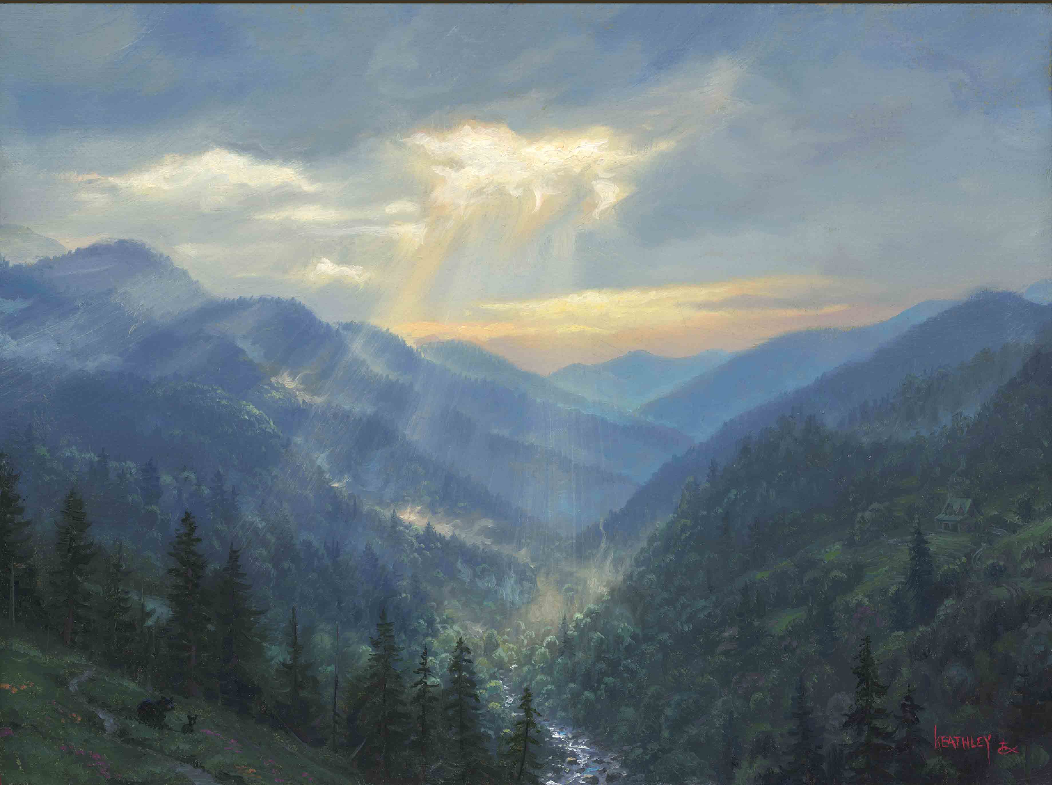 When I was a young artist (16 or 17 years old) I always took my latest creation to the person I knew would be the most excited about it. My Gramma (Annette Keathley) would put her hands over her face and say, “Oh the heavens declare the glory of God!” Her excitement about my art is probably what compelled me to do another painting the next day. Whenever I paint a glorious sunny sky I think of her and her desire to turn everything into a conversation about the sweetness and majesty of God. She left me a great legacy of faith and of art.
